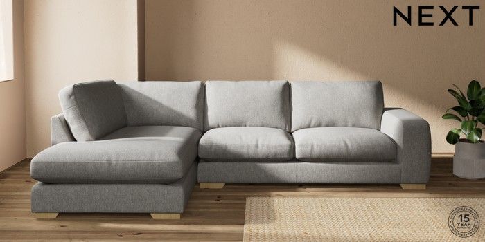 7.2.10 Houghton Deep Relaxed Sit Large Corner Chaise - Left Hand Tweedy Chenille Mid Grey Large Square Angle - Light | Made Click here to use our website with more accessibility support, for example screen readers