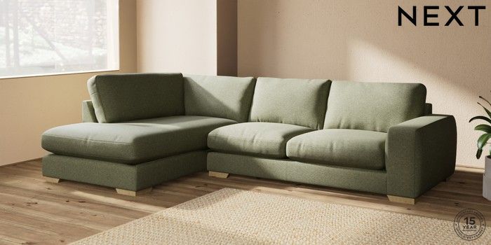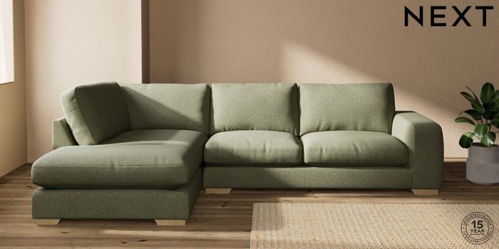 7.2.10 Houghton Deep Relaxed Sit Large Corner Chaise - Left Hand Tweedy Chenille Mid Moss Green Large Square Angle - Light | Made Click here to use our website with more accessibility support, for example screen readers