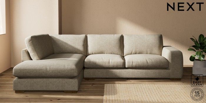 7.2.10 Houghton Deep Relaxed Sit Large Corner Chaise - Left Hand Woven Chenille Easy Clean Mid Natural Large Square Angle - Mid | Made Click here to use our website with more accessibility support, for example screen readers