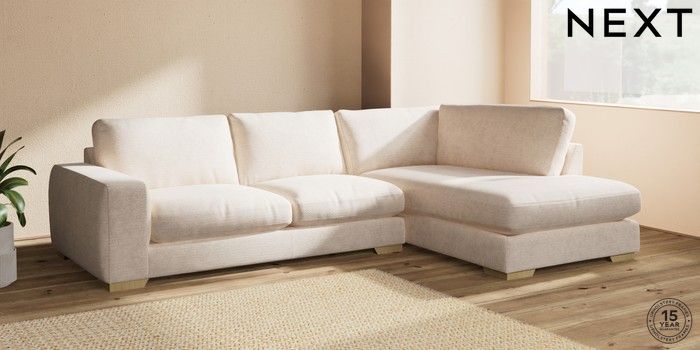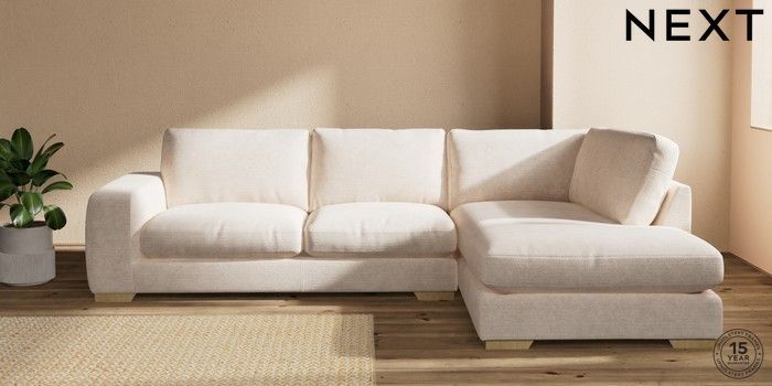 7.2.10 Houghton Deep Relaxed Sit Large Corner Chaise - Right Hand Boucle Chenille Oyster Large Square Angle - Light | Made Click here to use our website with more accessibility support, for example screen readers