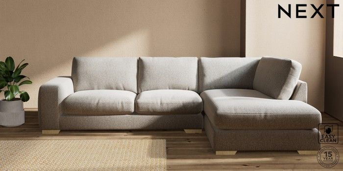 7.2.10 Houghton Deep Relaxed Sit Large Corner Chaise - Right Hand Chunky Boucle Easy Clean Dove Large Square Angle - Light | Made Click here to use our website with more accessibility support, for example screen readers