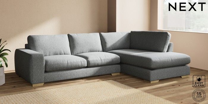 7.2.10 Houghton Deep Relaxed Sit Large Corner Chaise - Right Hand Chunky Boucle Easy Clean Mid Grey Large Square Angle - Light | Made Click here to use our website with more accessibility support, for example screen readers