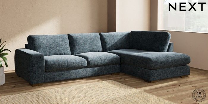 7.2.10 Houghton Deep Relaxed Sit Large Corner Chaise - Right Hand Chunky Chenille Dark Navy Blue Large Square Angle - Mid | Made Click here to use our website with more accessibility support, for example screen readers