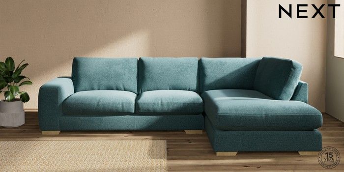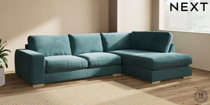 7.2.10 Houghton Deep Relaxed Sit Large Corner Chaise - Right Hand Chunky Chenille Mid Teal Green Large Square Angle - Light | Made Click here to use our website with more accessibility support, for example screen readers