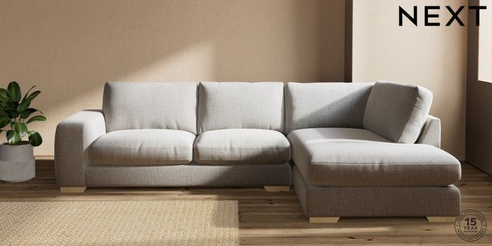 7.2.10 Houghton Deep Relaxed Sit Large Corner Chaise - Right Hand Chunky Weave Dove Grey Large Square Angle - Light | Made Click here to use our website with more accessibility support, for example screen readers