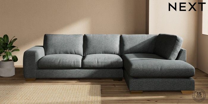 7.2.10 Houghton Deep Relaxed Sit Large Corner Chaise - Right Hand Cotswold Chenille Dark Grey Large Square Angle - Brushed Brass | Made Click here to use our website with more accessibility support, for example screen readers