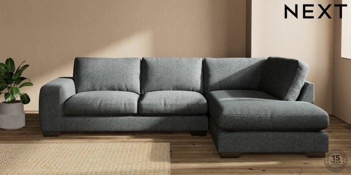 7.2.10 Houghton Deep Relaxed Sit Large Corner Chaise - Right Hand Cotswold Chenille Dark Grey Large Square Angle - Gunmetal | Made Click here to use our website with more accessibility support, for example screen readers