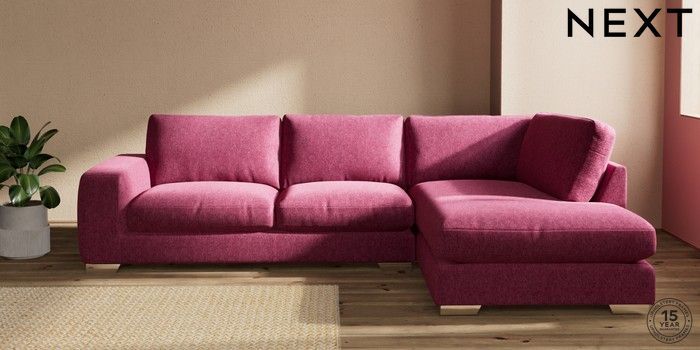 7.2.10 Houghton Deep Relaxed Sit Large Corner Chaise - Right Hand Cotswold Chenille Dark Raspberry Pink Large Square Angle - Chrome Metal | Made Click here to use our website with more accessibility support, for example screen readers