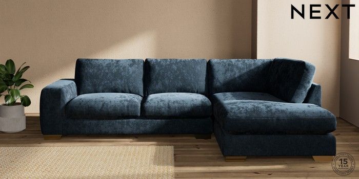 7.2.10 Houghton Deep Relaxed Sit Large Corner Chaise - Right Hand Distressed Velour Midnight Blue Large Square Angle - Brushed Brass | Made Click here to use our website with more accessibility support, for example screen readers