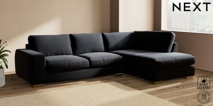 7.2.10 Houghton Deep Relaxed Sit Large Corner Chaise - Right Hand Fine Chenille Easy Clean Black Large Square Angle - Brushed Brass | Made Click here to use our website with more accessibility support, for example screen readers