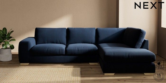 7.2.10 Houghton Deep Relaxed Sit Large Corner Chaise - Right Hand Fine Chenille Easy Clean Dark Navy Blue Large Square Angle - Light | Made Click here to use our website with more accessibility support, for example screen readers