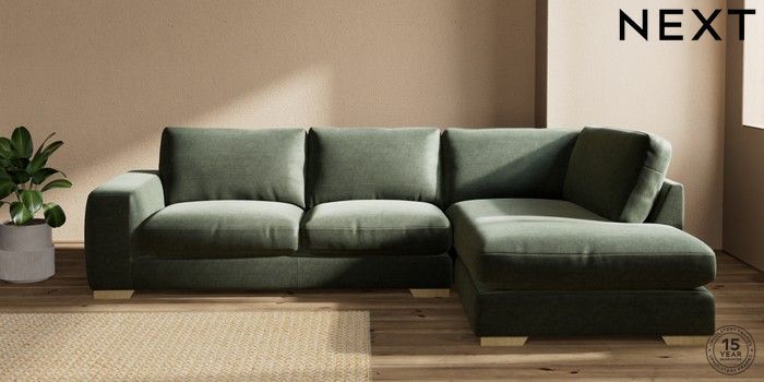 7.2.10 Houghton Deep Relaxed Sit Large Corner Chaise - Right Hand Luxe Chenille Mid Green Large Square Angle - Light | Made Click here to use our website with more accessibility support, for example screen readers