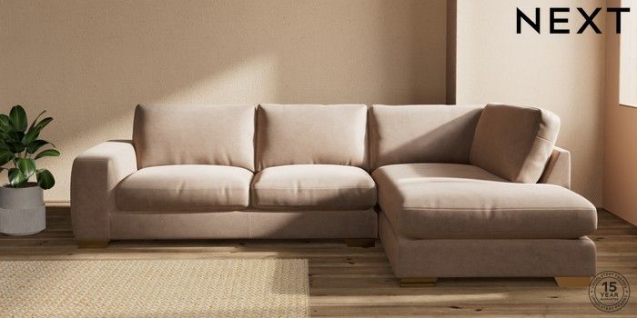 7.2.10 Houghton Deep Relaxed Sit Large Corner Chaise - Right Hand Luxe Chenille Mid Natural Large Square Angle - Brushed Brass | Made Click here to use our website with more accessibility support, for example screen readers