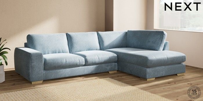 7.2.10 Houghton Deep Relaxed Sit Large Corner Chaise - Right Hand Plush Chenille Light Blue Large Square Angle - Light | Made Click here to use our website with more accessibility support, for example screen readers