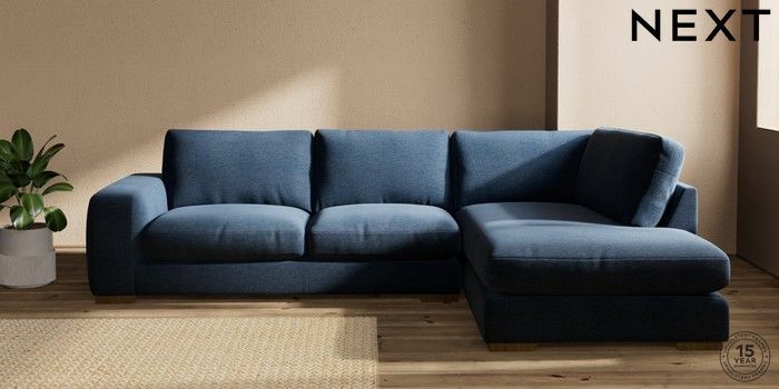 7.2.10 Houghton Deep Relaxed Sit Large Corner Chaise - Right Hand Ripple Chenille Dark Blue Large Square Angle - Mid | Made Click here to use our website with more accessibility support, for example screen readers