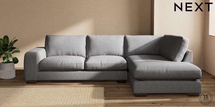 7.2.10 Houghton Deep Relaxed Sit Large Corner Chaise - Right Hand Studio Chenille Mid Grey Large Square Angle - Gunmetal | Made Click here to use our website with more accessibility support, for example screen readers