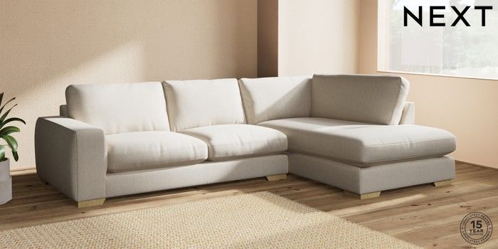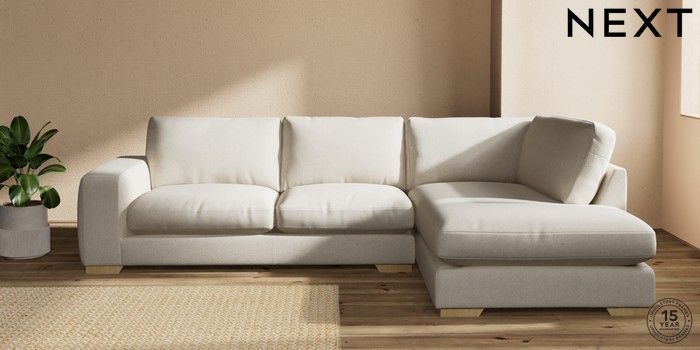 7.2.10 Houghton Deep Relaxed Sit Large Corner Chaise - Right Hand Tweedy Chenille Oyster Large Square Angle - Light | Made Click here to use our website with more accessibility support, for example screen readers