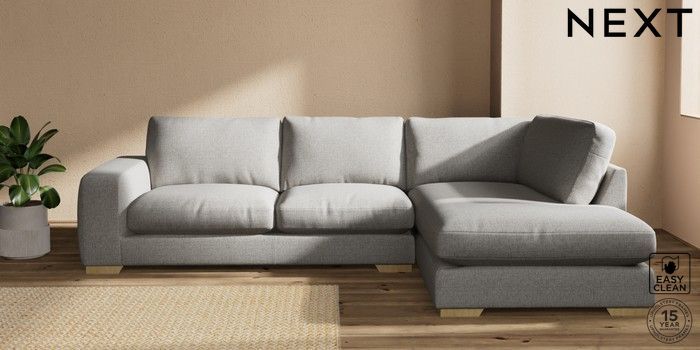 7.2.10 Houghton Deep Relaxed Sit Large Corner Chaise - Right Hand Woven Chenille Easy Clean Light Grey Large Square Angle - Light | Made Click here to use our website with more accessibility support, for example screen readers