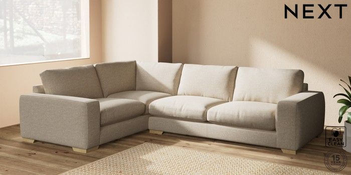 7.2.10 Houghton Deep Relaxed Sit Large Corner Sofa - Left Hand Boucle Weave Easy Clean Dark Natural Large Square Angle - Light | Made Click here to use our website with more accessibility support, for example screen readers