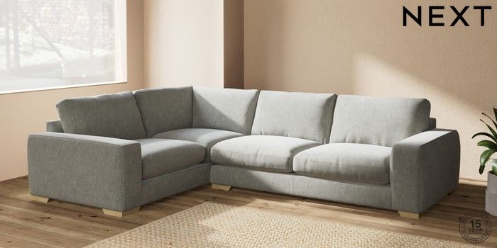 7.2.10 Houghton Deep Relaxed Sit Large Corner Sofa - Left Hand Chunky Chenille Light Grey Large Square Angle - Light | Made Click here to use our website with more accessibility support, for example screen readers