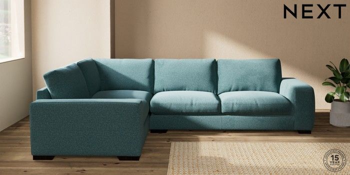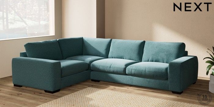 7.2.10 Houghton Deep Relaxed Sit Large Corner Sofa - Left Hand Chunky Chenille Mid Teal Green Large Square Angle - Dark | Made Click here to use our website with more accessibility support, for example screen readers