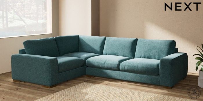 7.2.10 Houghton Deep Relaxed Sit Large Corner Sofa - Left Hand Chunky Chenille Mid Teal Green Large Square Angle - Mid | Made Click here to use our website with more accessibility support, for example screen readers