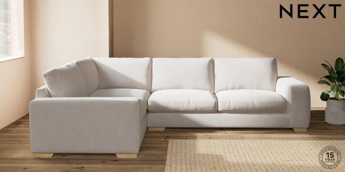 7.2.10 Houghton Deep Relaxed Sit Large Corner Sofa - Left Hand Chunky Chenille Oyster Large Square Angle - Light | Made Click here to use our website with more accessibility support, for example screen readers