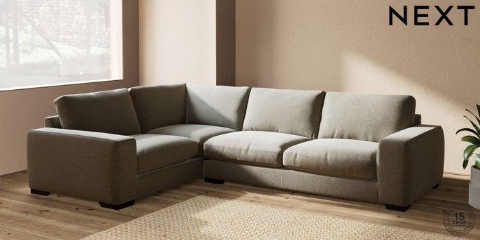 7.2.10 Houghton Deep Relaxed Sit Large Corner Sofa - Left Hand Chunky Marl Light Olive Green Large Square Angle - Dark | Made Click here to use our website with more accessibility support, for example screen readers