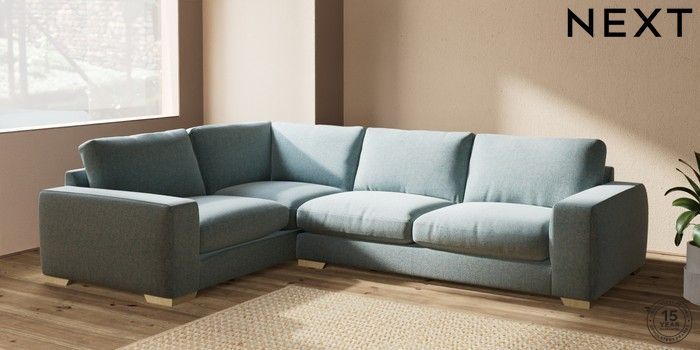 7.2.10 Houghton Deep Relaxed Sit Large Corner Sofa - Left Hand Chunky Marl Mid Blue Large Square Angle - Light | Made Click here to use our website with more accessibility support, for example screen readers