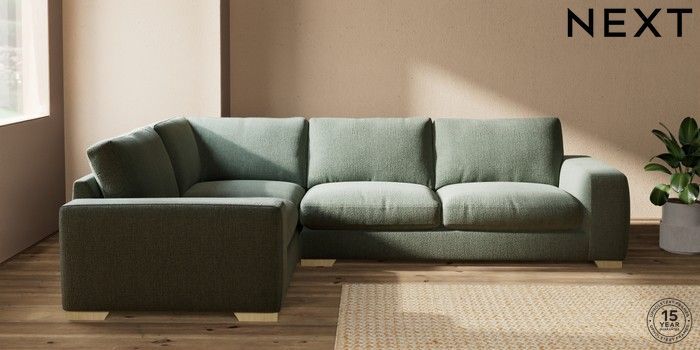 7.2.10 Houghton Deep Relaxed Sit Large Corner Sofa - Left Hand Chunky Texture Mid Forest Green Large Square Angle - Light | Made Click here to use our website with more accessibility support, for example screen readers