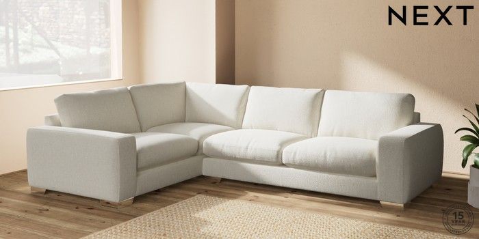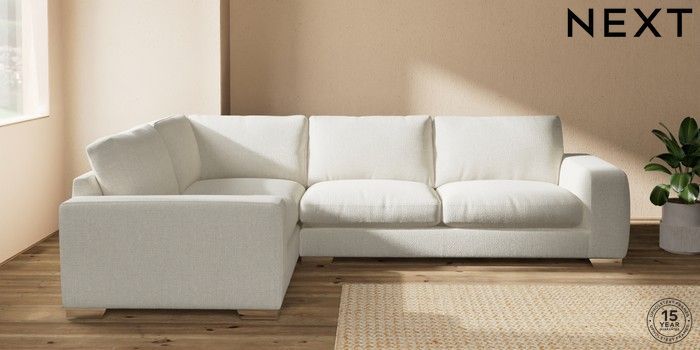 7.2.10 Houghton Deep Relaxed Sit Large Corner Sofa - Left Hand Chunky Texture Oyster Large Square Angle - Chrome Metal | Made Click here to use our website with more accessibility support, for example screen readers