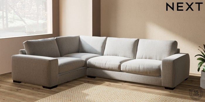 7.2.10 Houghton Deep Relaxed Sit Large Corner Sofa - Left Hand Chunky Weave Dove Grey Large Square Angle - Dark | Made Click here to use our website with more accessibility support, for example screen readers