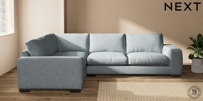 7.2.10 Houghton Deep Relaxed Sit Large Corner Sofa - Left Hand Chunky Weave Mid Blue Large Square Angle - Gunmetal | Made Click here to use our website with more accessibility support, for example screen readers