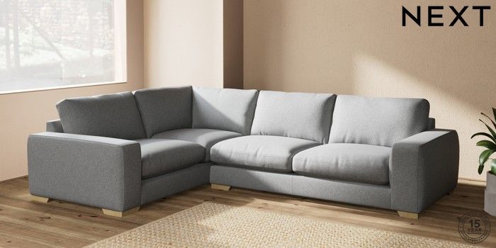7.2.10 Houghton Deep Relaxed Sit Large Corner Sofa - Left Hand Chunky Weave Mid Grey Large Square Angle - Light | Made Click here to use our website with more accessibility support, for example screen readers