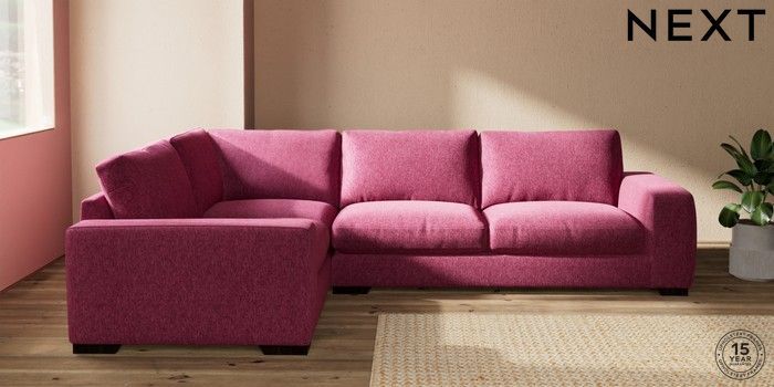 7.2.10 Houghton Deep Relaxed Sit Large Corner Sofa - Left Hand Cotswold Chenille Dark Raspberry Pink Large Square Angle - Dark | Made Click here to use our website with more accessibility support, for example screen readers