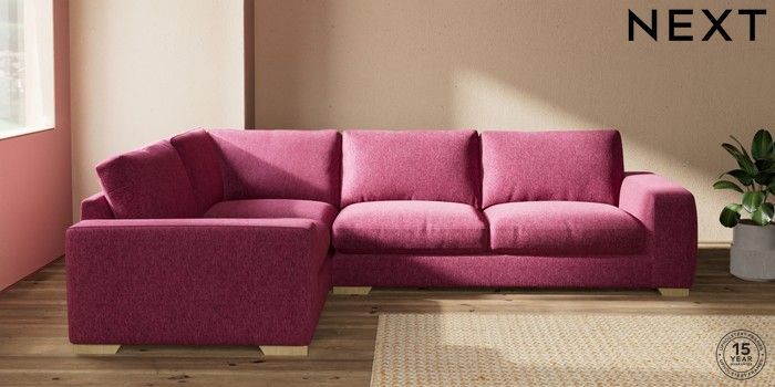 7.2.10 Houghton Deep Relaxed Sit Large Corner Sofa - Left Hand Cotswold Chenille Dark Raspberry Pink Large Square Angle - Light | Made Click here to use our website with more accessibility support, for example screen readers
