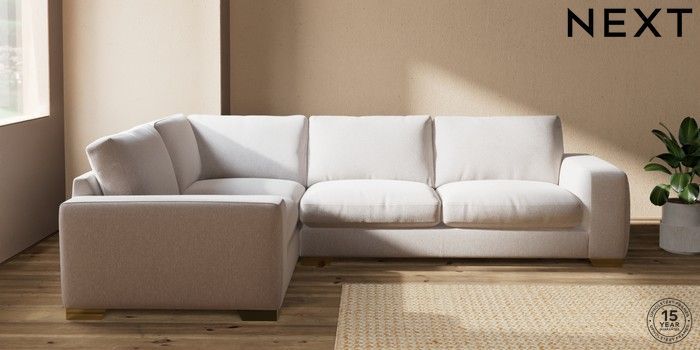 7.2.10 Houghton Deep Relaxed Sit Large Corner Sofa - Left Hand Cotswold Chenille Oyster Large Square Angle - Brushed Brass | Made Click here to use our website with more accessibility support, for example screen readers