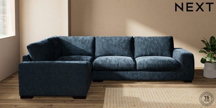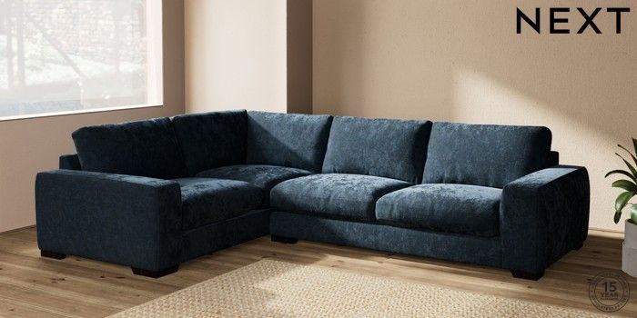 7.2.10 Houghton Deep Relaxed Sit Large Corner Sofa - Left Hand Distressed Velour Midnight Blue Large Square Angle - Dark | Made Click here to use our website with more accessibility support, for example screen readers