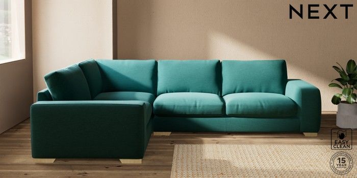 7.2.10 Houghton Deep Relaxed Sit Large Corner Sofa - Left Hand Fine Chenille Easy Clean Dark Juniper Green Large Square Angle - Light | Made Click here to use our website with more accessibility support, for example screen readers