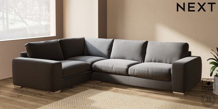 7.2.10 Houghton Deep Relaxed Sit Large Corner Sofa - Left Hand Fine Chenille Easy Clean Dark Smoke Grey Large Square Angle - Chrome Metal | Made Click here to use our website with more accessibility support, for example screen readers