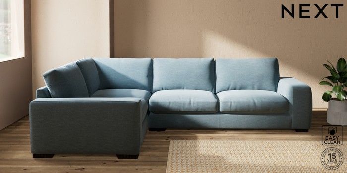 7.2.10 Houghton Deep Relaxed Sit Large Corner Sofa - Left Hand Fine Chenille Easy Clean Mid Blue Large Square Angle - Dark | Made Click here to use our website with more accessibility support, for example screen readers