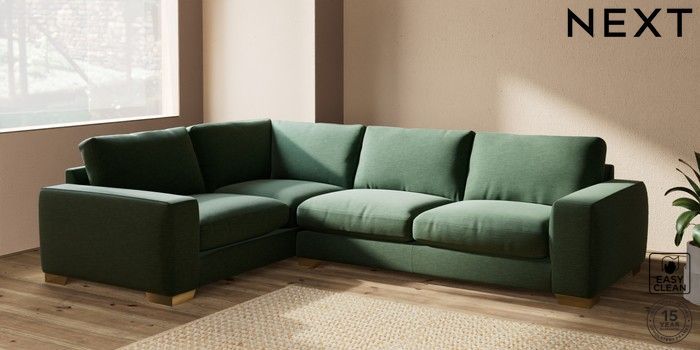 7.2.10 Houghton Deep Relaxed Sit Large Corner Sofa - Left Hand Fine Chenille Easy Clean Mid Khaki Green Large Square Angle - Brushed Brass | Made Click here to use our website with more accessibility support, for example screen readers