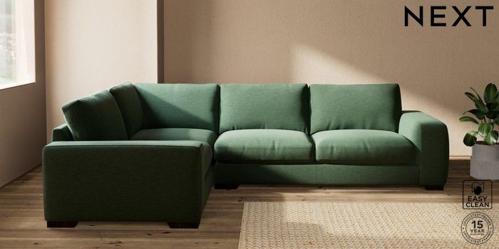 7.2.10 Houghton Deep Relaxed Sit Large Corner Sofa - Left Hand Fine Chenille Easy Clean Mid Khaki Green Large Square Angle - Dark | Made Click here to use our website with more accessibility support, for example screen readers