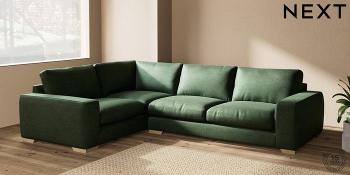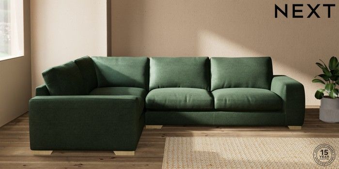 7.2.10 Houghton Deep Relaxed Sit Large Corner Sofa - Left Hand Luxe Chenille Dark Green Large Square Angle - Light | Made Click here to use our website with more accessibility support, for example screen readers
