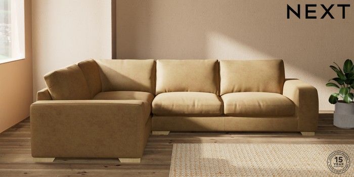 7.2.10 Houghton Deep Relaxed Sit Large Corner Sofa - Left Hand Luxe Chenille Honey Yellow Large Square Angle - Light | Made Click here to use our website with more accessibility support, for example screen readers