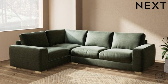7.2.10 Houghton Deep Relaxed Sit Large Corner Sofa - Left Hand Luxe Chenille Mid Green Large Square Angle - Light | Made Click here to use our website with more accessibility support, for example screen readers