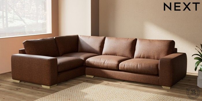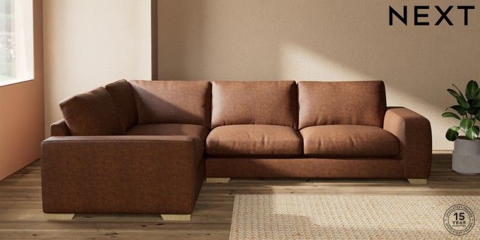 7.2.10 Houghton Deep Relaxed Sit Large Corner Sofa - Left Hand Monza Faux Leather Easy Clean Chestnut Brown Large Square Angle - Light | Made Click here to use our website with more accessibility support, for example screen readers