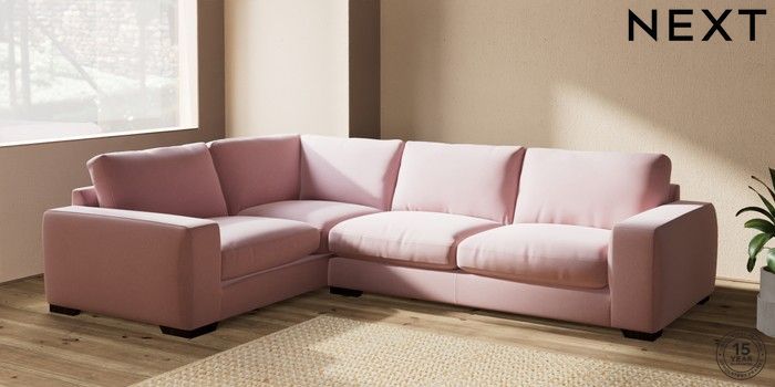 7.2.10 Houghton Deep Relaxed Sit Large Corner Sofa - Left Hand Natural Mix Light Rose Pink Large Square Angle - Dark | Made Click here to use our website with more accessibility support, for example screen readers