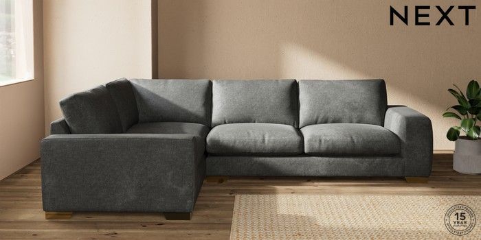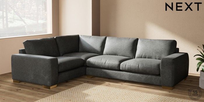 7.2.10 Houghton Deep Relaxed Sit Large Corner Sofa - Left Hand Plush Chenille Dark Grey Large Square Angle - Brushed Brass | Made Click here to use our website with more accessibility support, for example screen readers