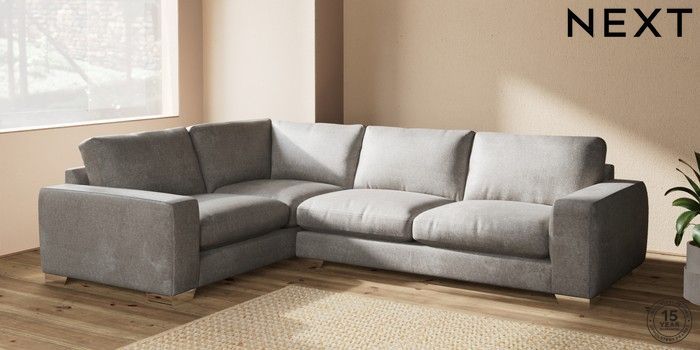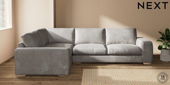 7.2.10 Houghton Deep Relaxed Sit Large Corner Sofa - Left Hand Plush Chenille Light Grey Large Square Angle - Chrome Metal | Made Click here to use our website with more accessibility support, for example screen readers